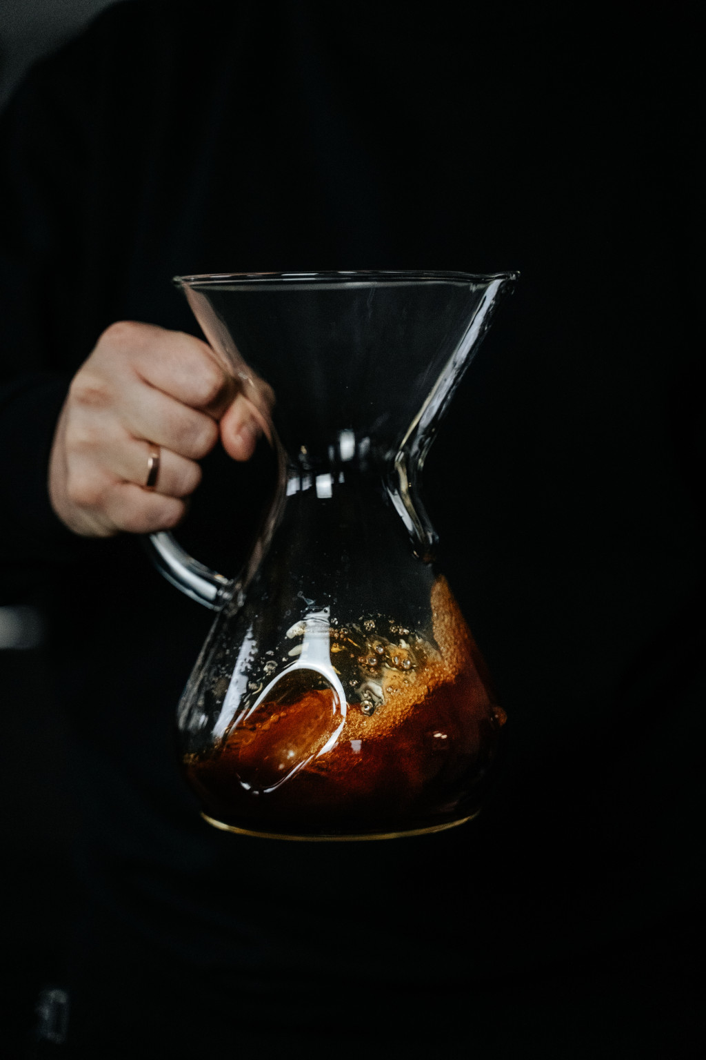 Kézzel kezdd el pörgetni a CHEMAER-t, óramutató járásával ellentétesen, ügyelve arra hogy a kávé ne fröccsenjen ki az eszközből. Kezdj 5-10 másodperces levegőztetéssel, és innét állítsd be a helyes időtartamot. Elképzelhető, hogy több főzés alatt alakul ki, hogy egy adott kávéhoz mi illik a legjobban. A folyamat levegőt juttat a kávéba, ezzel megváltoztatva a kész kávé ízeit.