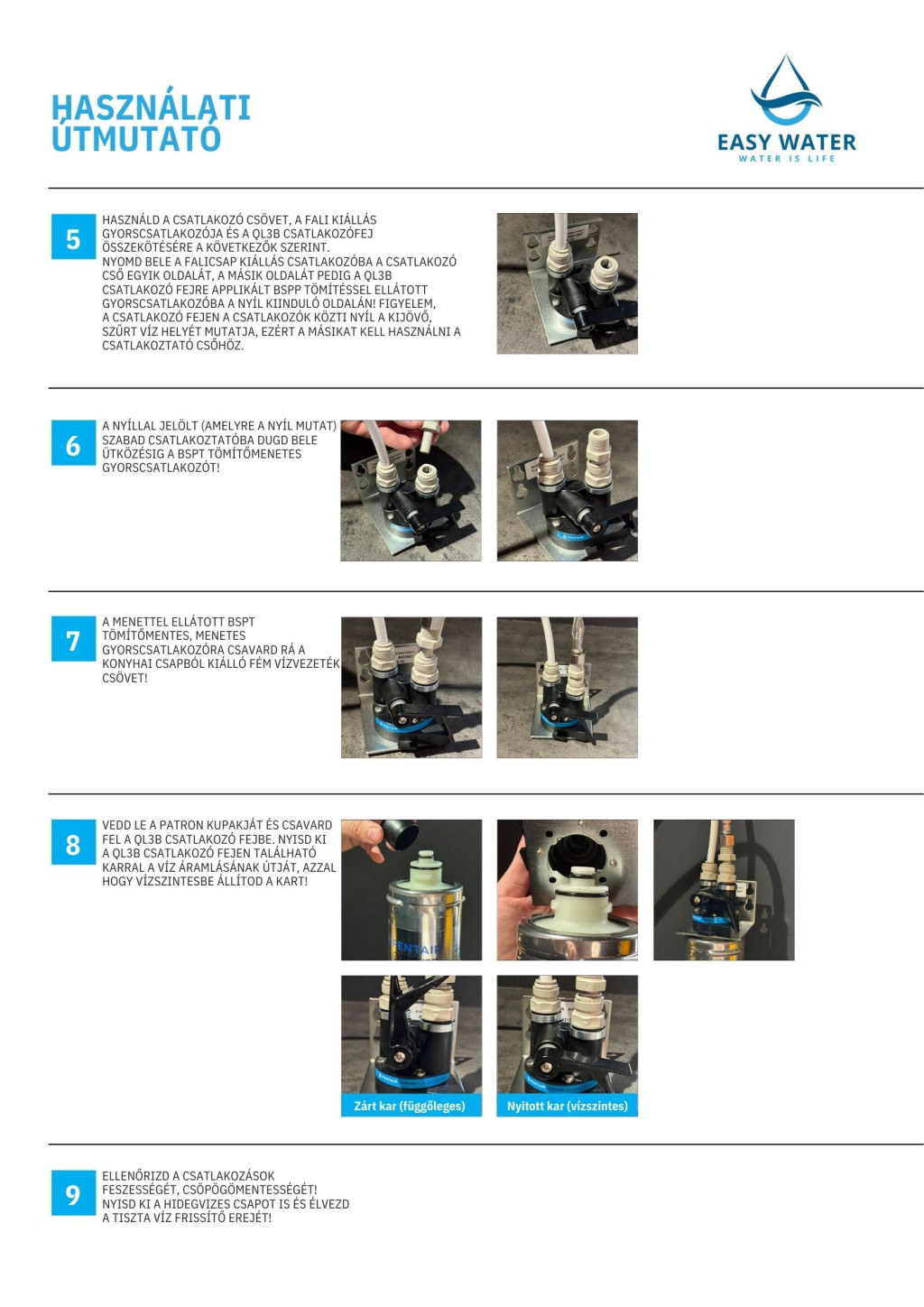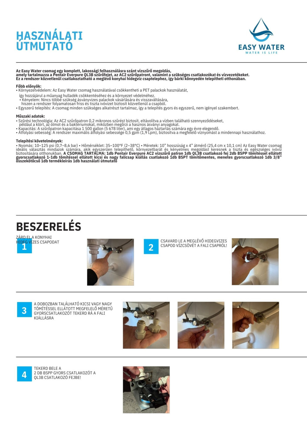 A csomag tartalmazz mindent ami a szakember nélküli gyors bekötéshez kell: