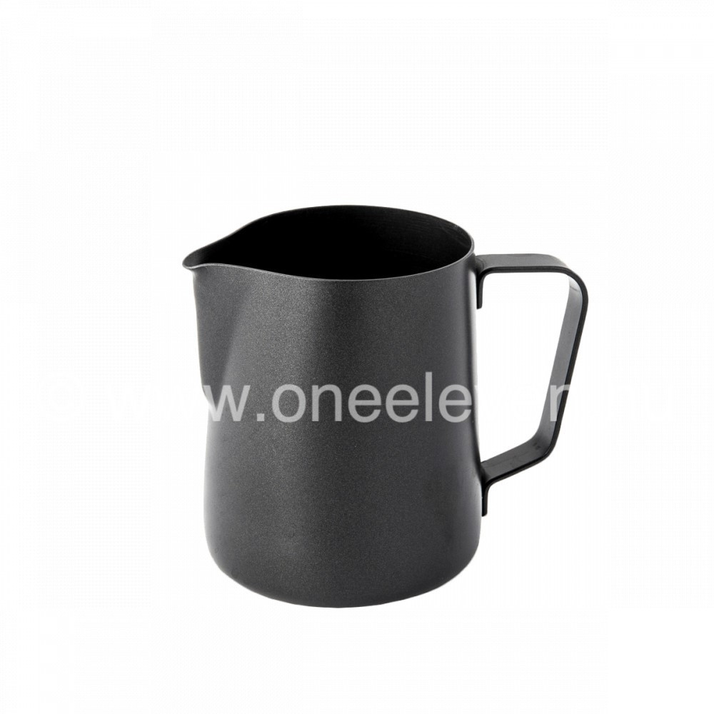 Latte art minták öntésére kiválóan alkamas fekete teflon bevonatú tejgözőlő edény 600ml kiszerelésben.